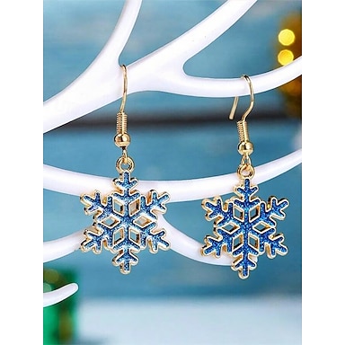女性用雪だるまと雪の結晶のドロップイヤリング - ホリデーパーティーにぴったりのラインストーンのアクセントが付いた華やかなクリスマスジュエリー
