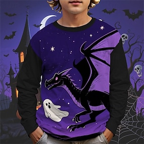 ハロウィーン 男の子 3D グラフィック Tシャツ Tシャツ 長袖 春 秋 ファッション ベーシック 子供 4〜12年 クルーネック アウトドア カジュアル 日常 レギュラー