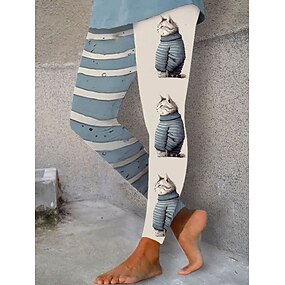 女性用 レギンス 旅行度假风 ヴィンテージ ファッション 全長 ハイウエスト グラフィック 猫 プリント 保温 ソフト 高通気性 伸縮性あり アウトドア バケーション ストリート ピンク ブルー パープル グリーン 春 秋 冬 スリムフィット
