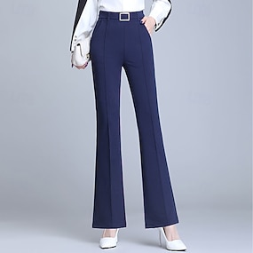 女性用 フレアパンツ チノパン ファッション ストリートファッション 全長 ハイウエスト 平織り ハイカット 履き心地よい 屋外 マイクロエラスティック オフィス ストリート 日常 ブラック ワイン オレンジ ダークブルー 春 秋 レギュラー