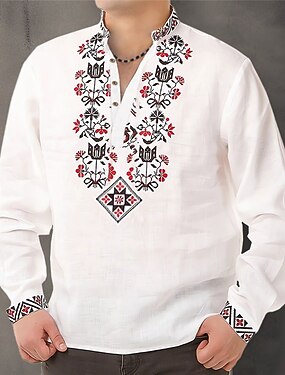 男性用 フラワー エスニック シャツ ボタンアップシャツ 長袖 ファッション ストリートファッション デザイナー アウトドア 日常 夏 春 秋 スタンド プリント ホワイト ピンク ブルー カーキ色 グレー