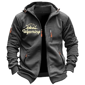 男性用 グラフィック 車載 パーカー フーディーズ スウェットシャツ 旅行度假风 日常 長袖 フード付き バケーション スポーツ・アウトドア お出かけ グレー プリント 冬 春 & 秋 デザイナー