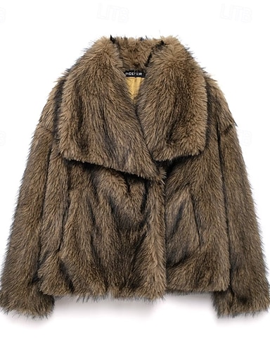 女性用 冬物コート コート フェイクファーコート 防風 保温 ポケット クロップド オープンフロント エレガント ファッション プラッシュ クラシック 純色 アウトドア バケーション ストリート デイリーウェア ショート 折襟 レギュラー 長袖 アウターウェア コーヒー 秋 冬