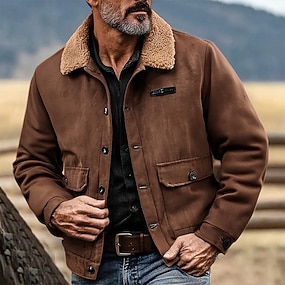 男性用 フェイクスエードジャケット 冬物ジャケット シェルパジャケット バケーション 日常 保温 ポケット フリース 秋 冬 平織り ファッション ストリートファッション ラペル レギュラー ブラック ブラウン ジャケット