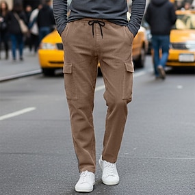 男性用 カーゴパンツ ズボン コーデュロイパンツ 冬のズボン ドローストリング マルチポケット ジップレッグ 平織り 履き心地よい ソフト 全長 アウトドア ビジネス 日常 ファッション ストリートファッション デニムブルー ブラック 伸縮性なし