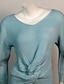 女性用 ニット プルオーバー 日常 スタイリッシュ カジュアル 純色 リブ Vネック ニット 七分袖 レギュラートップス ニット アウトドア 日常 ブラック ライトグリーン 夏 春