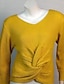 女性用 ニット プルオーバー 日常 スタイリッシュ カジュアル 純色 リブ Vネック ニット 七分袖 レギュラートップス ニット アウトドア 日常 イエロー アーミーグリーン 夏 春