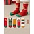 レディース クリスマス ソックス セット、ホリデー ツリーとストライプ柄の 5 足組、赤、緑 &白、クリスマスプレゼントに最適