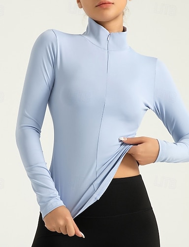 女性用 ランニングTシャツ ジッパー 長袖 Tシャツ カジュアル アスレイジャー ソリッド 速乾性 高通気性 ジムトレーニング ウォーキング ジョギング スポーツウェア アクティブウェア ブラック アプリコット コーヒー