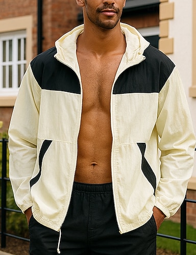 男性用 ジップアップフーディー アウトドアジャケット ドローストリング ポケット 長袖 トップス アスレイジャー パッチワーク 日焼け防止 防風 UPF50+ ライトウェイト ハイキング いい結果になる アスレチック スポーツウェア アクティブウェア ライトグレー グリーン カーキ色