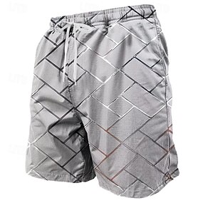 男性用 幾何学模様 グリッド / タータンチェック スイムショーツ ボードショーツ スイミングトランクス ミディアムウエスト ストリートファッション ハワイアン ビーチでの休暇 サイドポケット メッシュライニング 伸縮性のあるドローストリングウエスト デザイナー 衣類