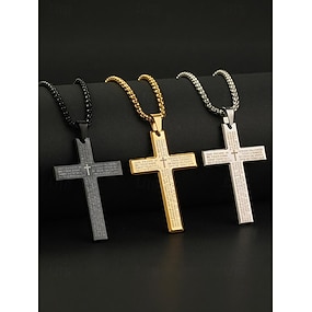 主の祈りの彫刻が施された男性用チタン鋼クロスペンダントネックレス。キリスト教の信仰のための宗教的なジュエリーチェーン。普段使いやギフトに。