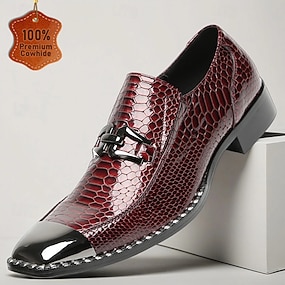 メンズ本革ブルゴーニュスネーク柄スリッポンローファー、メタルバックル付き - エレガントなパーティーやイブニングドレスシューズ