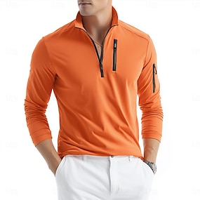 男性用 ポロシャツ クォータージップポロ バケーション ストリート ハイネック クォータージップ 長袖 ファッション ベーシック 純色 平織り ポケット 春 & 秋 オールシーズン スリムフィット オレンジ ポロシャツ