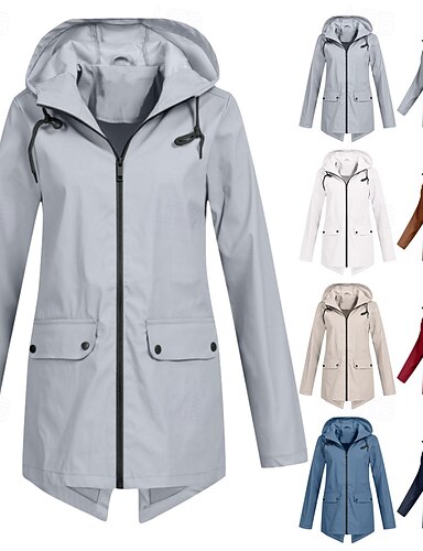 女性用 冬物コート パーカージャケット 保温 快適 ジッパー ポケット カジュアル 平織り アウトドア バケーション デイリーウェア お出かけ レギュラー フード付き レギュラー 長袖 アウターウェア 海軍 ワイン ブルー 秋 冬