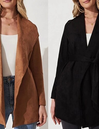 女性用 カジュアルジャケット 保温 快適 ポケット ボタン ファッション 屋外 平織り お出かけ 週末 シングルブレスト レギュラー ラペル レギュラー 長袖 アウターウェア ブラック ブラウン カーキ色 秋 冬