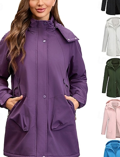 女性用 パーカージャケット 防水レインジャケット レインコート 防水 保温 ジッパー ポケット ファッション カジュアル 平織り デイリーウェア 週末 ジッパ- ロング フード付き レギュラー 長袖 アウターウェア ブラック イエロー ピンク 秋 冬