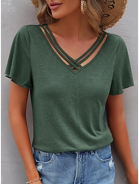 女性用 Tシャツ 平織り カジュアル 半袖 Vネック レギュラートップス 日常 週末 切り抜き アーミーグリーン グレー 夏