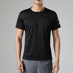 男性用 パフォーマンスシャツ スポーツTシャツ 半袖 クルーネック トップス アウトドア 速乾性 モイスチャーコントロール 防臭 高通気性 ポリエステル ブラック ホワイト イエロー テニス ゴルフ ランニング