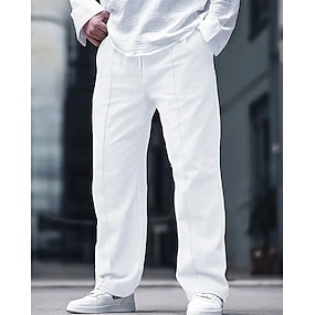 男性用 リネンパンツ ズボン サマーパンツ バギーパンツ ビーチパンツ 弾性ウエスト ドローストリング まっすぐな足 平織り 履き心地よい 高通気性 全長 カジュアル 日常 祝日 旅行度假风 ファッション ホワイト ピンク 伸縮性なし