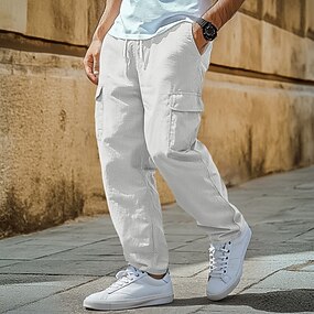 男性用 リネンパンツ ズボン サマーパンツ ビーチパンツ ポケット まっすぐな足 平織り 履き心地よい 高通気性 バケーション 日常 祝日 ハワイアン ボヘミアン ブラック ホワイト