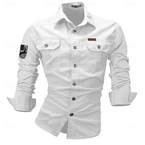 男性用 純色 ワークシャツ ウエスタンシャツ カーゴシャツ 長袖 カジュアル ミリタリー スポーツ お出かけ 冬 春 & 秋 折襟 プリント ブラック ホワイト ルビーレッド ブルー カーキ色