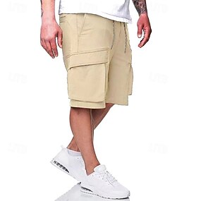 男性用 カーゴショーツ ショーツ サマーショーツ ドローストリング 弾性ウエスト マルチポケット 平織り 履き心地よい 耐久性 膝丈 アウトドア スポーツ 日常 ファッション カジュアル ブラック カーキ色