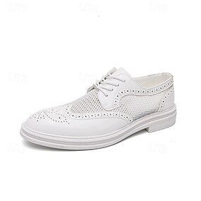 メンズドレスシューズ - 結婚式、ダンスパーティー、特別なイベントに最適な白い穴あきオックスフォードシューズ