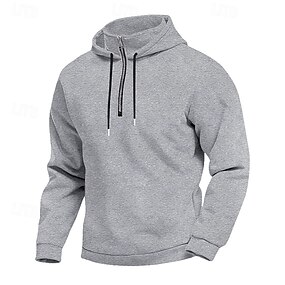 男性用 パーカー クォータージッパーパーカー ブラック アーミーグリーン ネイビーブルー カーキ色 ライトグレー フード付き 平織り ポケット ドローストリング スポーツ 日常 祝日 ポリエステル ストリートファッション ベーシック カジュアル 春 秋 衣類 パーカー トレーナー 長袖