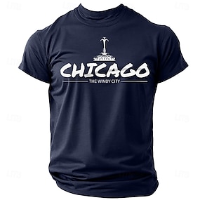 男性用 都市 レタープリント Tシャツ ティートップ コットン100% 半袖 グラフィック シャツ ブラック ワイン ダークブルー 快適なTシャツ ストリート スポーツ・アウトドア ファッションデザイナーの衣類