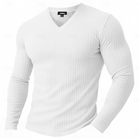 男性用 Tシャツ マッスルシャツ リブニットTシャツ ティートップ 長袖 Vネック 春 秋 冬 平織り ピットストリップ ファッション デザイナー ベーシック 編み バケーション ストリート カジュアル ライトブルー ブラック ホワイト メンズトップTシャツ