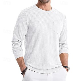 男性用 Tシャツ ティートップ 長袖シャツ 長袖 クルーネック 春 & 秋 平織り ファッション デザイナー ベーシック ポケット ジャカード バケーション ストリート お出かけ ダークブラウン ブラック ホワイト メンズトップTシャツ