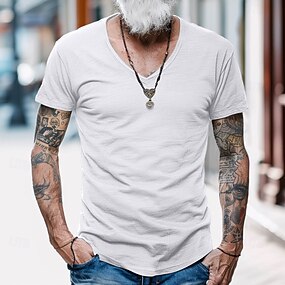 男性用 Tシャツ 半袖 Vネック 夏 平織り スポーツ ファッション ライトウェイト バケーション カジュアル 祝日 ブラック ホワイト メンズトップTシャツ