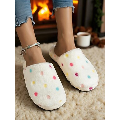 女性用ふわふわの目柄室内スリッパ - 冬、くつろぎ、ギフトに最適な快適なプラッシュハウスシューズ