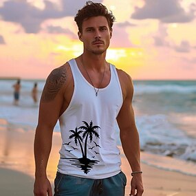 男性用 グラフィック ココヤシ ベストトップ 男性用ノースリーブTシャツ ノースリーブ Tシャツ 3Dプリント クルーネック シャツ 旅行度假风 トロピカル風 デザイナー パーティー 日常 ジム用 ホワイト 春夏 衣類 S M L XL 2XL 3XL
