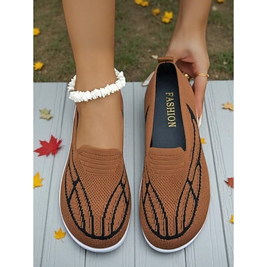 女性用 スリッポン フライニットシューズ 裸足の靴 ワイドフィットシューズ 日常 トラベル 母の日 フラットヒール ラウンドトウ カジュアル コンフォートシューズ ミニマリズム ウォーキング ティッシュ・ボランティア ローファー ブラック ブラウン グレー