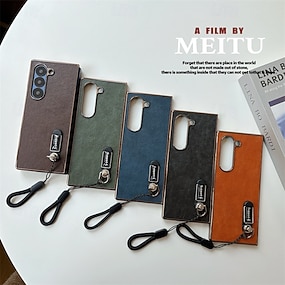 電話 ケース 用途 サムスンのギャラクシー Zフォールド6 Z Fold 5 Z Fold 4 Z Fold 3 バックカバー リストストラップ付き 耐衝撃 レトロ風 TPU PUレザー
