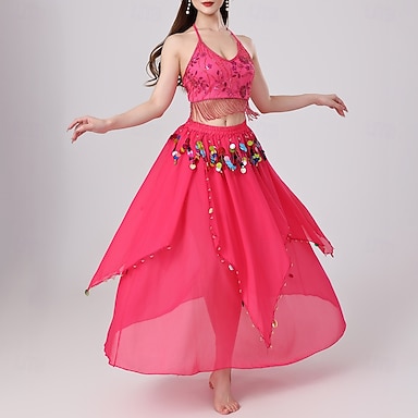 ベリーダンス 上着 ピュアカラー スプライシング スパンコール 女性用 性能 訓練 ノースリーブ ハイウエスト ポリエステル
