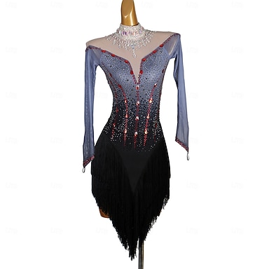 ラテンダンス ドレス クリスタル / ラインストーン 女性用 性能 デイリーウェア 長袖 スパンデックス