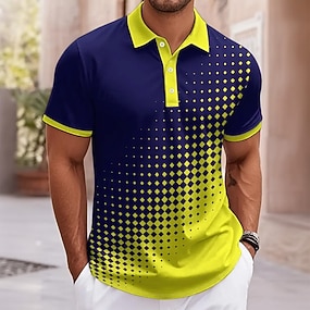 男性用 抽象的 幾何学的な ポロ 半袖 ポロシャツ ラペル ビジネスカジュアル ビジネス アスレイジャー 3Dプリント ボタン 夏 レイクブルー ホワイト イエロー