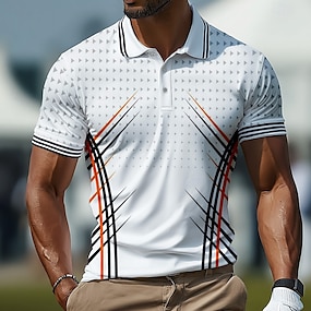 男性用 スポーツポロシャツ カジュアル スポーツ ラペル 半袖 幾何学模様 ライン ボタン 夏 ロビンエッグブルー オレンジ グリーン スポーツポロシャツ