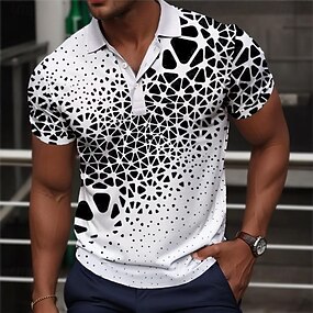 男性用 幾何学模様 ワッフルポロシャツ 半袖 ポロシャツ 襟付きシャツ ビジネスカジュアル ビジネス アスレイジャー フェスティバル衣装 ボタン 3Dプリント 夏 ブラック