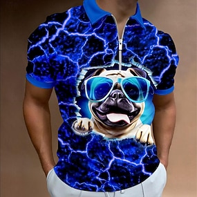 男性用 ジップポロシャツ ゴルフシャツ 半袖 ポロシャツ 襟付きシャツ カジュアル おかしい ストリートウェア バケーションウェア パーティー衣装 3Dプリント クォータージップポロ 夏 青黒 ロイヤルブルー ミントグリーン