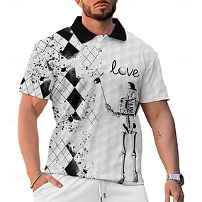 男性用 幾何学模様 ポロシャツ ゴルフシャツ 半袖 ポロシャツ 襟付きシャツ ビジネスカジュアル バケーションウェア フォーマルウェア フェスティバルウェア ボタン 3Dプリント ブラック ホワイト ピンク