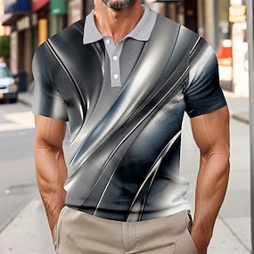 男性用 幾何学的な ライン ワッフルポロシャツ 半袖 ポロシャツ 襟付きシャツ ビジネスカジュアル アウトドア ビジネス アスレイジャー ボタン 3Dプリント 夏 グレー