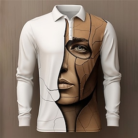 男性用 グラフィック ポロシャツ ゴルフシャツ 長袖 ポロシャツ 襟付きシャツ カジュアル バケーションウェア レイブウェア パーティー衣装 3Dプリント ボタン 秋冬 ブラック ホワイト グレー
