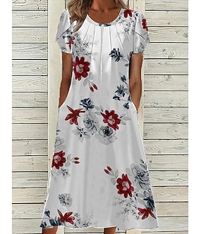 女性用 ひざ丈ドレス シフォンドレス サマードレス プリントドレス ファッション ストリートファッション 成熟した アウトドア バケーション 日常 レギュラー フラワー 半袖 クルーネック グレー 夏 春