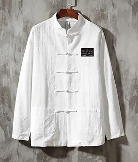 男性用 リネンシャツ カジュアルシャツ ボタンアップシャツ 平織り バケーション ストリート ブラック ホワイト ダークネイビー ベージュ 長袖 グランダッドカラー 春夏 衣類 ポケット