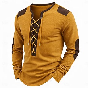男性用 幾何学模様 ヘンリーシャツ ワッフルTシャツ 長袖 ヴィンテージ 日常 レトリ/ヴィンテージ スポーツ・アウトドア カジュアル 祝日 春夏 オールシーズン ブルー イエロー グリーン レッド ヘンリー ヘンリーTシャツ