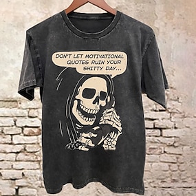 男性用 レトロ風 ビンテージ Tシャツティー ウォッシュドシャツ コットン100% 半袖 グラフィック シャツ ブラック 快適なTシャツ ストリート 日常 ファッションデザイナーの衣類
